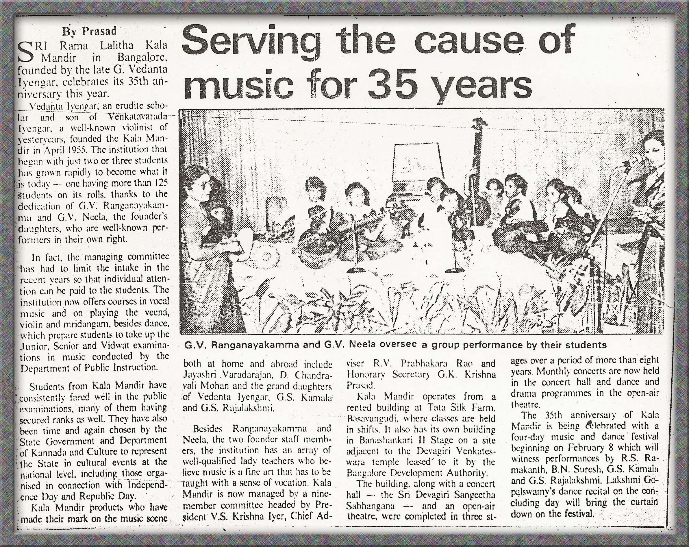 which have resulted in Sri Rama Lalitha Kala Mandira being considered the finest Carnatic music